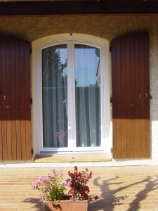 Poser lors d’un chantier de rénovation, cette fenêtre PVC blanc s’intègre parfaitement à la maison et respecte le charme des ouvertures cintrée.