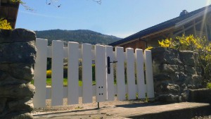Pose d’un portail blanc en PVC à Séez en Savoie, par Solabaie Alp’Fermetures.