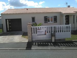 Modèle TURNER RAL 7016 Remplacement d’une porte de garage basculante par une porte de garage sectionnelle motorisée SOMFY IO avec portillon incorporé. L’ancienne porte d’entrée a été remplacé par une porte en aluminium de 82mm d’épaisseur. Et grâce au savoir-faire Solabaie, l’ensemble est coordonné donnant une esthétique unique à votre habitation. Nous avons aussi renouvelé les volets battants en PVC par des volets battants en aluminium isolés afin d’y apporter la touche finale. Le résultat parle de lui-même. Avant Après Chantier réalisé à Tonnay Charente près de Rochefort.